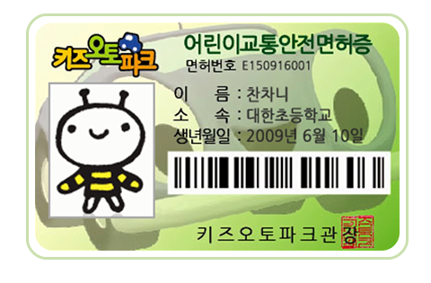 면허시험에 합격하면 어린이교통안전면허증이 발급됩니다.
