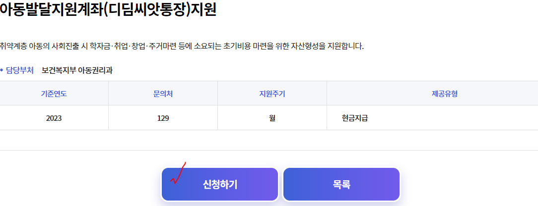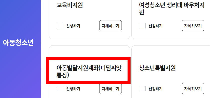 세 번째 아동청소년 => 아동발달지원계좌 신청하기